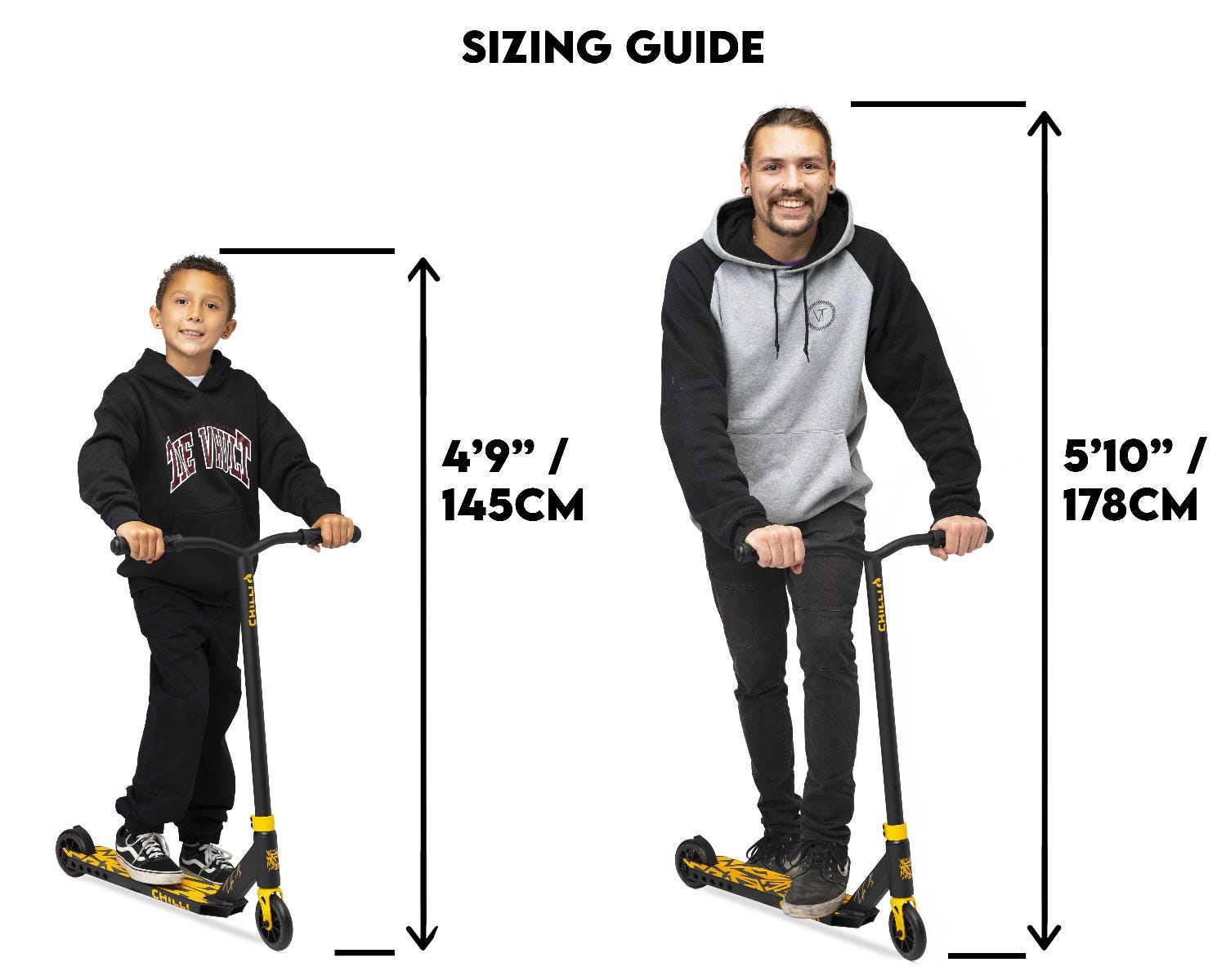 Corey Funk's signature pro scooter was designed to be one of the best scooters on the market within its price range. The black and gold colorway is Corey's signature look, and was carefully built to Corey's specifications so that he can do his level of riding on the scooter as well.