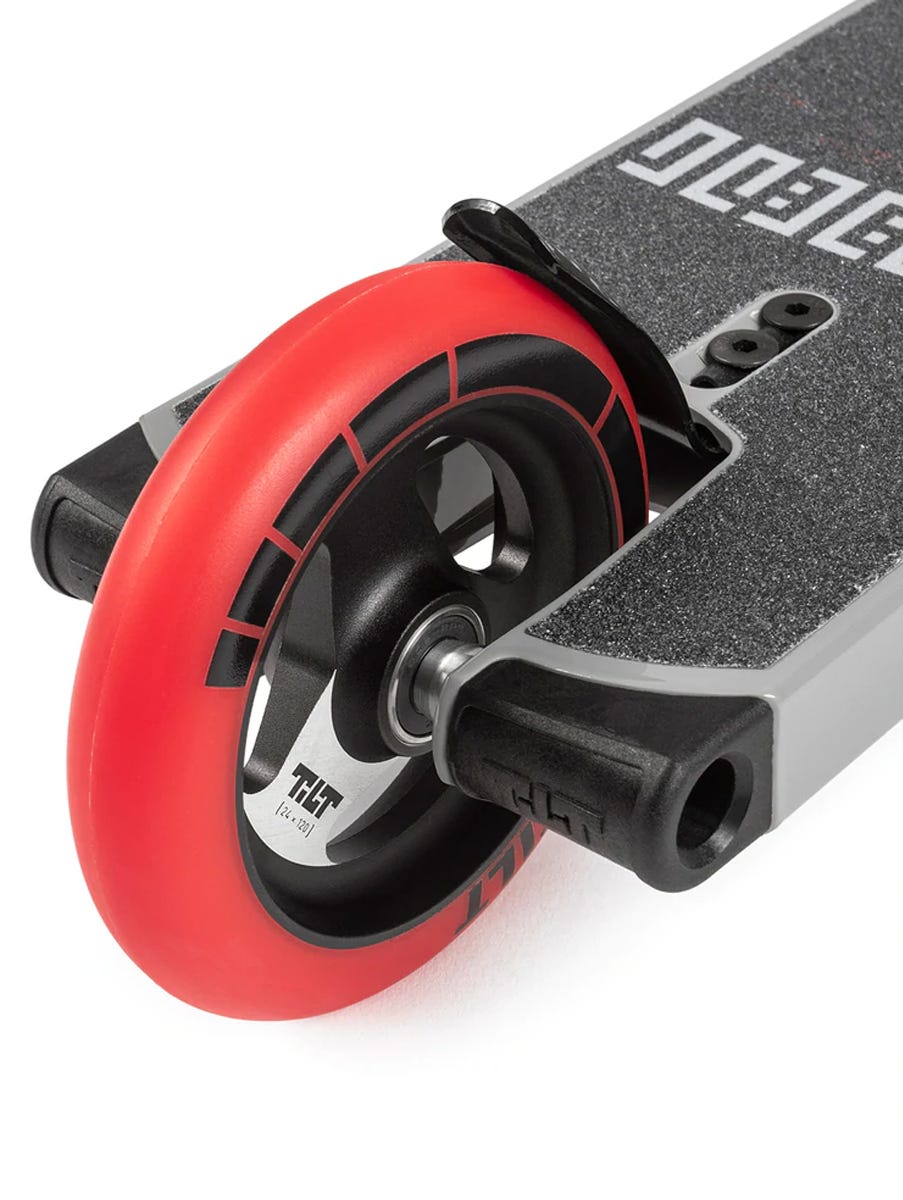 The Passage es el vehículo de TiLT para la destrucción de parques y la conducción centrada en la progresión. Cuenta con manillares de aluminio que ayudan a reducir el peso y una plataforma ágil de 5" de ancho por 20" de largo. ¡Este tamaño ofrecerá una buena cantidad de espacio para los pies y al mismo tiempo mantendrá la plataforma fácil de mover, lo cual es ideal para maniobras en el parque o progresión en general! Las ruedas Stage I de 120 mm están diseñadas para ser suaves, con agarre y rápidas. ¡Ideal para impulsar los cuartos y no lavarse en el suelo resbaladizo del parque de patinaje! Finalmente, estas piezas se mantienen unidas mediante el mejor sistema de compresión de la industria, SCS. El SCS permanecerá apretado por más tiempo (menos mantenimiento) y aumentará la vida útil de la barra y la horquilla. ¡También es extremadamente fácil cambiar piezas en el futuro cuando llegue el momento de personalizarlas!